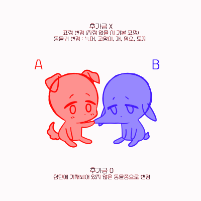 (해당 부분은 궁뎅툭툭, 모찌모찌, 코코넨네 타입에 기본적으로 해당됩니다. 동물귀와 꼬리 삭제가 가능하나, 별도의 할인이 적용되지 않습니다. 뽀꾹뽀꾹과 모구모구 타입도 동물 귀와 꼬리 추가가 가능하나 추가금이 발생합니다.)