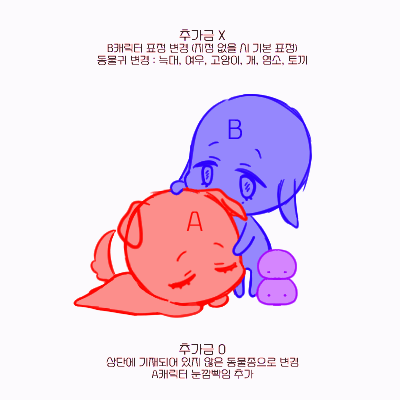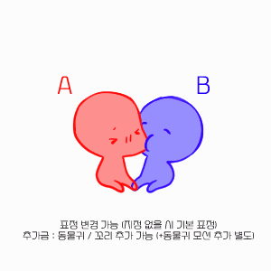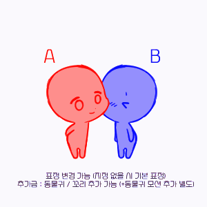 - 보내주신 자료를 좌우 순 A(좌)B(우), 상하 순 A(상)B(하) 캐릭터로 작업합니다. 범용 자료로 주시는 경우 착오가 발생하여도 수정해드리지 않으니 꼭 위치 확인 후에 전달 부탁드려요.